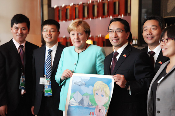 (2016年9月4日,德国总理默克尔接见我校G20峰会接待小组)