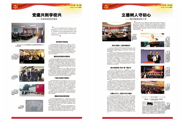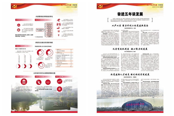 《奋进》特刊系统回顾了校党委带领全校师生砥砺奋进的五年。其中,封面配发评论,鼓舞全校师生同心同德、改革创新、再创辉煌。2版对学校历次党代会进行回顾;3-8版图文并茂,系统梳理过去五年学校在党的建设、思政、人才培养、科研学科、国际合作等方面取得的喜人成绩;9-14版邀请二级党组织负责人畅谈5年来各基层党建实践探索与工作经验,15版介绍本次党代会筹备工作情况。封底号召全校师生为高水平建设社会主义的万象城体育平台中国有限公司,而努力奋斗!