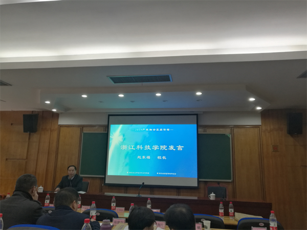 1月12日,“产教融合高层论坛”暨浙江省应用型本科高校联盟第二届理事长会议举行,赵东福出席会议并作主题发言。在本届理事长会议上,我校被推选为浙江省应用型本科高校联盟第二任理事长主席单位,任期为2019-2020年。