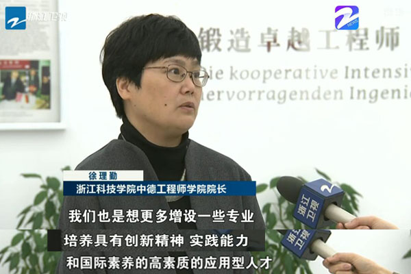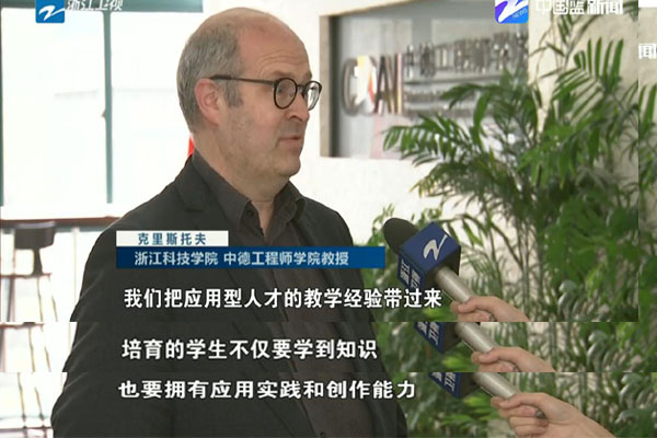 当日,浙江卫视新闻联播报道了全省教育大会新闻,关注浙江高等教育如何培养更多高素质人才,更好服务经济发展。新闻以我校彰显国际化特色,培养高素质应用型人才的探索为例,并采访了中德工程师学院院长徐理勤教授和德方专家、吕贝克应用科技大学克里斯托夫教授(视频链接:https://newsapp.cztv.com/video/index.jsp?c=5811069#)。徐理勤介绍了我校与德国高校合作的历程,中德工程师学院的人才培养模式等。她表示,学习借鉴德国高校的应用型人才培养经验,培养更多高素质应用型人才,才能更好地为浙江经济转型升级服务。