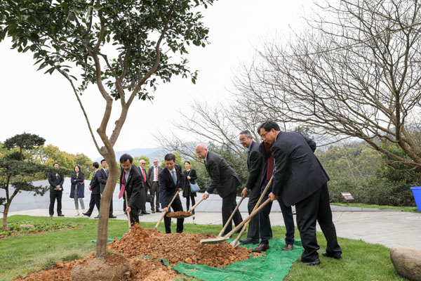葛策一行还参观了我校中德合作馆,与德籍教师、德国项目学生及德国留学生代表进行座谈,参观中德友谊园并共同栽种了象征着中德两国的友谊之树。