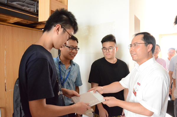8月24日,新生报到当天,校党委书记龚建立、校长赵东福等校党政领导在相关职能部门负责人的陪同下,来到迎新现场,看望前来报到的新生及其亲友,慰问参与迎新工作的师生员工。他们详细查看了各迎新接待点,向迎新工作人员询问新生报到情况,嘱咐相关部门和学院一定要为新生和家长提供便利。校领导还来到宿舍,走访看望2019级新生和家长,向他们介绍学校特色和发展概况。许多新同学表达了自己对于大学生活的憧憬和期待,他们纷纷表示,浙科是人生中一个新的起点,希望在这里放飞梦想。