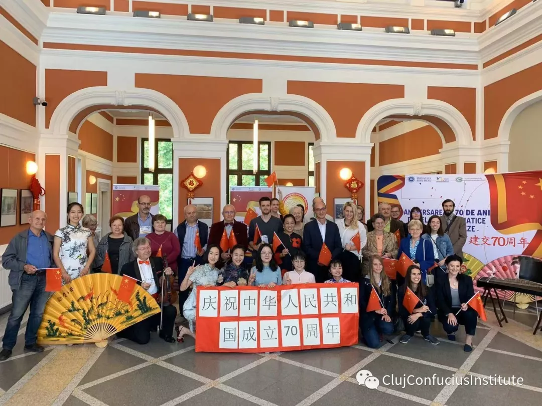 国庆前,罗马尼亚克鲁日孔子学院组织了一系列以庆祝中华人民共和国成立70周年为主题的文化活动,为祖国庆生。孔子学院教学点的老师们组织中罗师生共同书写的汉字“祝福中国”、中罗传统服饰秀等活动,为新中国成立70周年送上的一份真诚祝福。克鲁日孔院师生手持国旗,身穿传统服饰,参加罗马尼亚巴比什-波雅依大学百年校庆大游行。(克鲁日孔子学院 刘雪纯/文 刘九伶/摄)