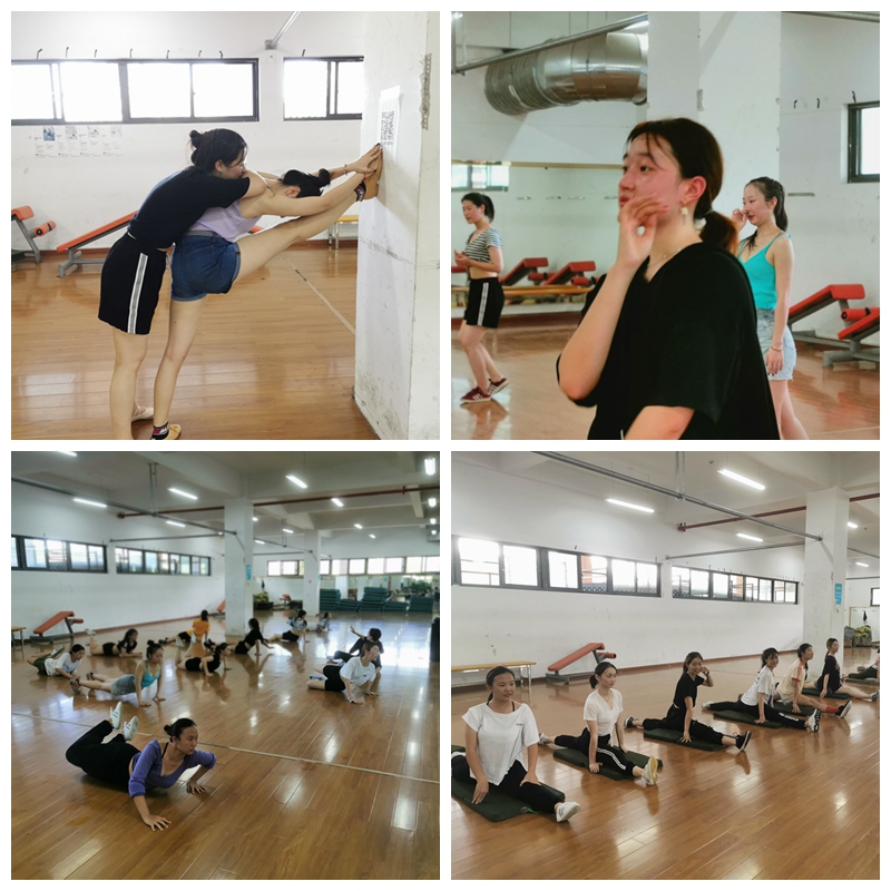 为了这次比赛,队员们个个都很拼。有的训练期间生病、有的受伤,照样坚持,每次训练大家都是头发、衣服湿透。“喝下去的水都变成了拧出来的汗。”回忆起比赛前的“疯狂”集训,信息管理与信息系统171班的陆靓霞开玩笑说。比赛在11月,但集训从暑假就开始了。先跟着老师发在群里的视频自己练习,熟悉动作,8月25日正式集训,但队员们都提早两三天回到学校,自己抠动作,互相指正学习。对没有舞蹈基础的陆靓霞来说,下叉是很让她“崩溃”的一件事,“经典系列规定动作曲目有《芳华》,这支舞的对柔韧性要求很高,可我这方面又是短板。”为了能够快速练就“一字马”,陆靓霞从一放假就开始每天做侧踢、压腿、睡前在床上开横杆……“每次练完都巨疼,但我不能拖团队后腿。”陆靓霞说。暑假六天的高密度集训,开学后一周两次到四次的练习,从步伐到手部动作,杨老师一个个给大家指导,舞步从迟缓到烂熟于心,队伍从参差到配合默契,陆靓霞跟着大家一起进步。同时还要备战11月省大运会田径比赛的她,腿酸腿软成了“常态”,陆靓霞给自己开了“小灶”,每天坚持泡脚、按摩,既是为了预防受伤,更是为了不让自己掉队。