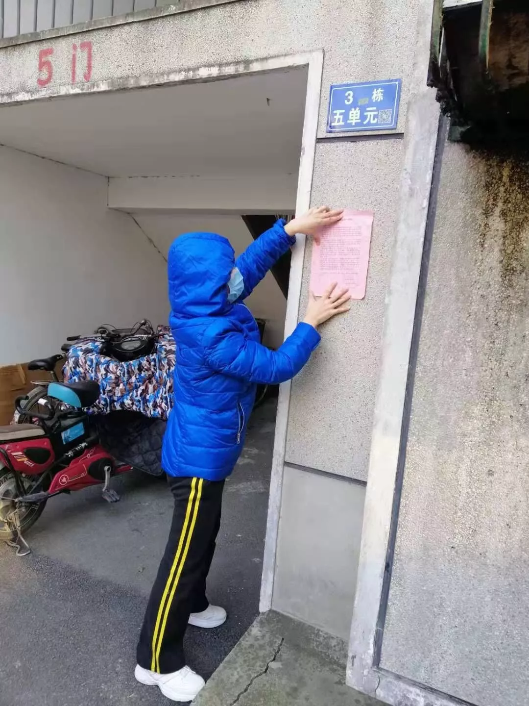 1月19日,艺术学院教工第三党支部书记宋眉教授回武汉探亲。那时,武汉的疫情发展正开始受到全国人民的关注。在家没歇两天,宋老师就在婆婆的联系下,主动前往居住的武昌沙湖社区,向社区书记徐玉萍和网格员杨柳、雷蕾了解防疫工作需求。社区同志建议宋老师,可以做一些力所能及的事,同时也要少出门,注意自我防护。宋老师的婆婆是名老党员,平时就是社区志愿者,这次就和宋老师“搭班”干活了。两人在小区楼道张贴宣传单,把防控信息及时传达给居民,提醒大家少出门。“社区人手也很紧张,我们还会帮着检查垃圾回收站的清理情况,看看楼道里有没有居民放在家门口没有及时清理的垃圾,这些都可能会产生污染。”