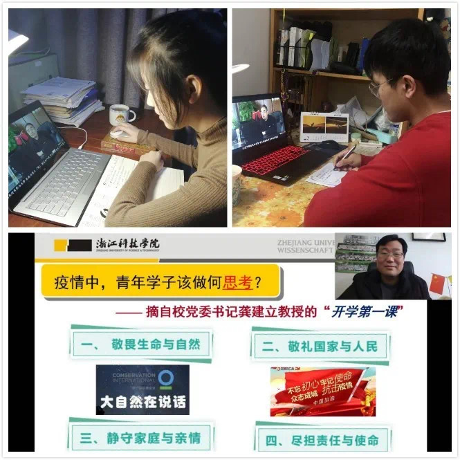 3月1日,校党委书记龚建立教授与两万师生云端相约,讲授了一堂特殊的新学期“第一课”。围绕“敬畏生命与自然”“敬礼国家与人民”“静守家庭与亲情”“尽担责任与使命”4个方面,他与师生分享了疫情防控战中的思考与所悟。不少师生第一时间通过官微、校网收看学习了这堂课,部分教师在今天线上教学中,特意导入了相关内容。云端第一课,引发了亲历、见证举国战“疫”的师生更多思考。