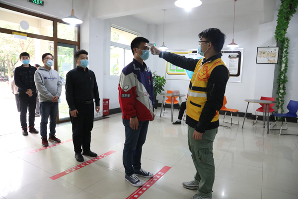 4月23日下午, 学校举行2020年春季学期学生开学返校演练。校长赵东福、校党委副书记周加敏、副校长郑友取到场督导。疫情防控工作领导小组各工作组组长,各学院党委副书记、辅导员等参加演练。