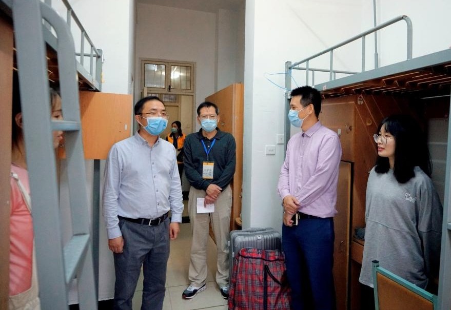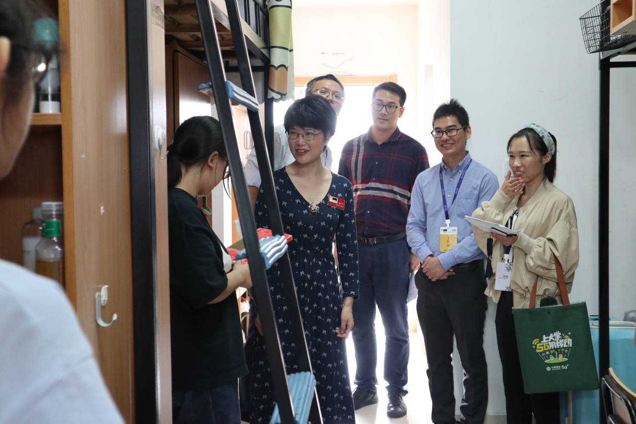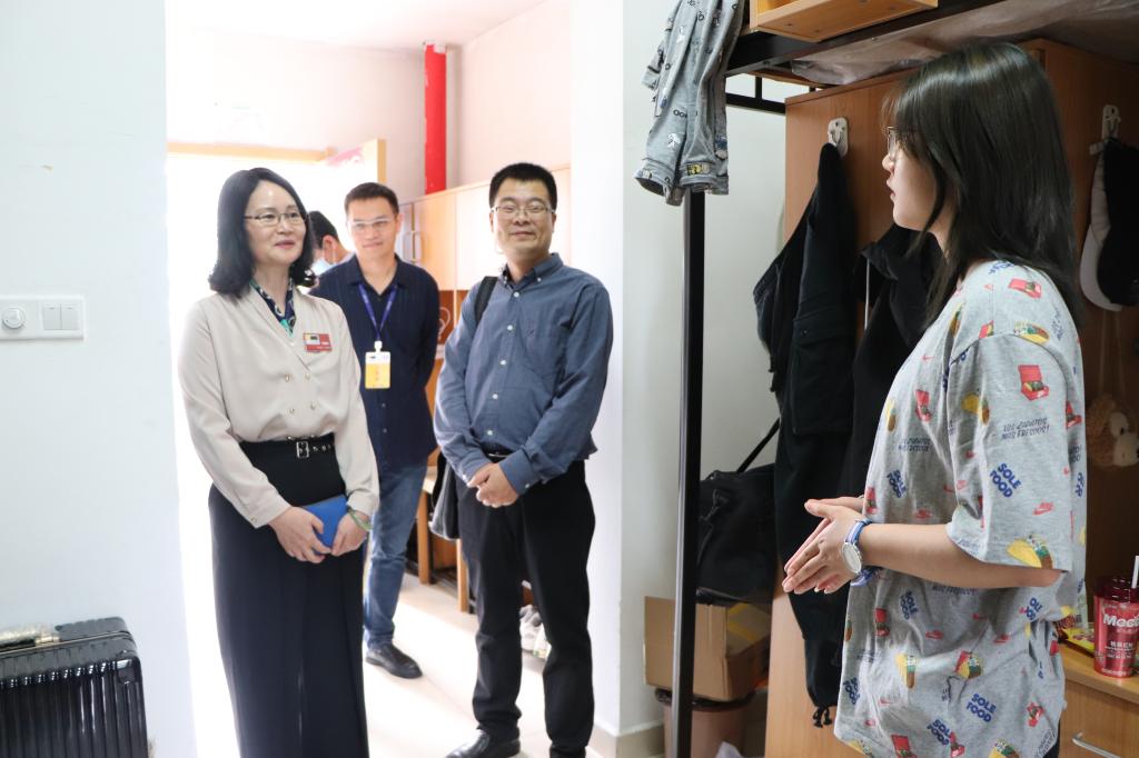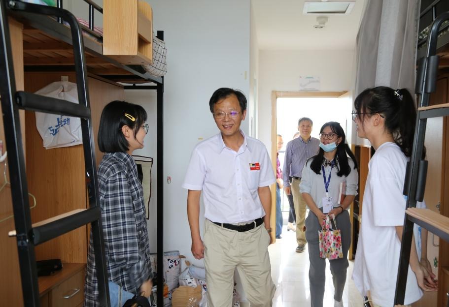 走进学生寝室,校领导了解2020级新生们到校后的感受,叮嘱他们要尽快向家长报平安,有困难要及时向辅导员反映,并鼓励新生要尽快适应大学生活,积极实践、实现梦想。