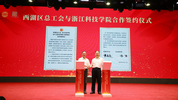 9月17日,第二届西湖工匠发布暨“9·26工匠日”系列活动启动仪式举行,副校长冯军受邀出席活动。会上,我校作为高校代表与西湖区总工会签订了工匠培育暨职工素质提升合作框架协议。
