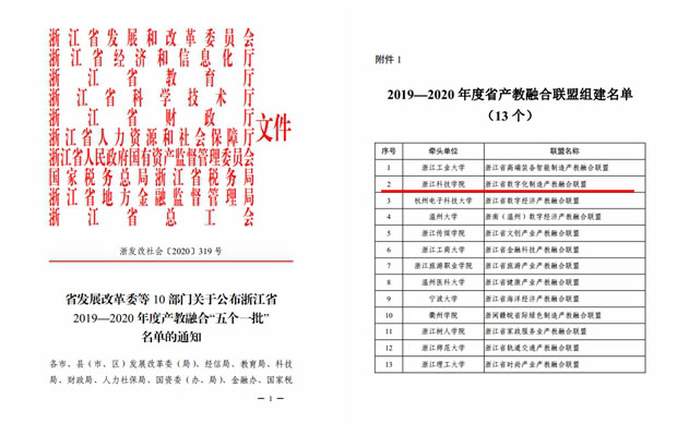 日前,浙江省发展和改革委员会等10部门公布浙江省 2019—2020 年度产教融合“五个一批”名单,我校牵头申报的“浙江省数字化制造产教融合联盟”入选2019-2020年度浙江省产教融合联盟组建名单。