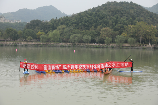 田径场上,校友足球队与教工足球队奋力争抢,西蜜湖中,鲜艳的皮划艇一字排开,特色趣味体育活动也在校园内热闹举行。绿色运动,青春无限,青春与梦想齐飞,为校庆画上一笔生机勃勃的鲜活色彩。