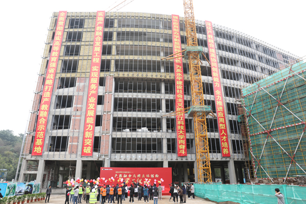 产教融合大楼建设项目于2018年底开工,是我校首个国家级重点建设项目,位于小和山校区实验中心大楼北侧。项目总投资约2.96亿元、总建筑面积为19995平方米。