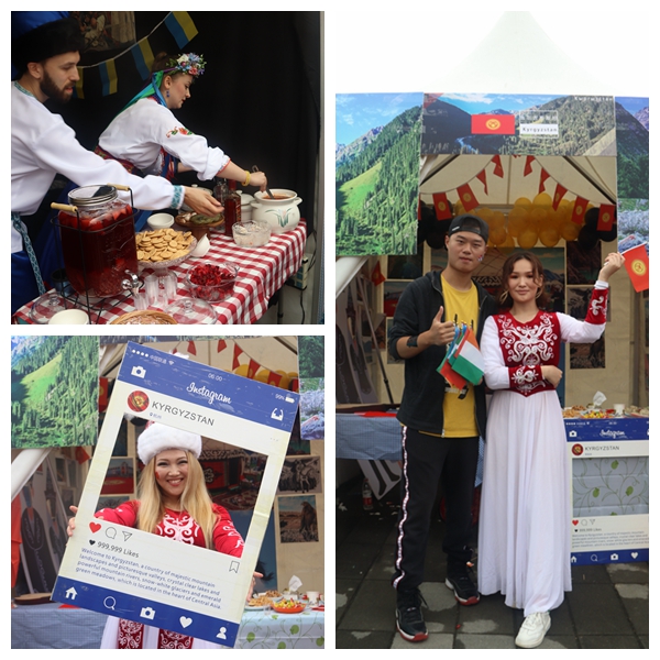 广场上,来自各个国家的留学生各展风采,中国学生也推出中国馆展示中华文化。活动现场气氛热烈,师生充分感受各国文化魅力。