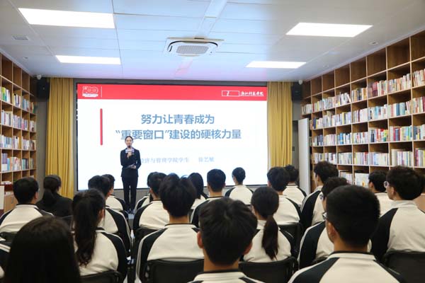 青年宣讲员、经管学院经济学191徐艺敏, 用3个当代浙江青年奋斗故事,作题为《努力让青春成为“重要窗口”建设的硬核力量》演讲,向大家分享了她理解的新时代青年力量。