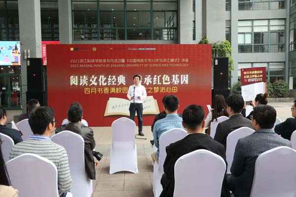 4月23日,以“阅读文化经典,传承红色基因”为主题的浙江科技学院读书月活动启动。副校长、校文化素质教育指导委员会主任单胜道出席启动仪式并致辞。