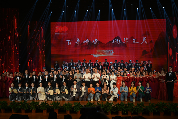 本次文艺晚会节目均由大学生艺术团和离退休教师出演,他们通过精心编排的节目致敬百年峥嵘岁月、礼赞幸福美好新时代,演绎了中华儿女从建党初期的探索,到如今建设新时代的百年历程,深情礼赞中国共产党人百年征程中的优秀品质,展现党领导人民群众取得的辉煌成就。(团委 学生记者 黄晓懿/文 艺术教育中心/摄)