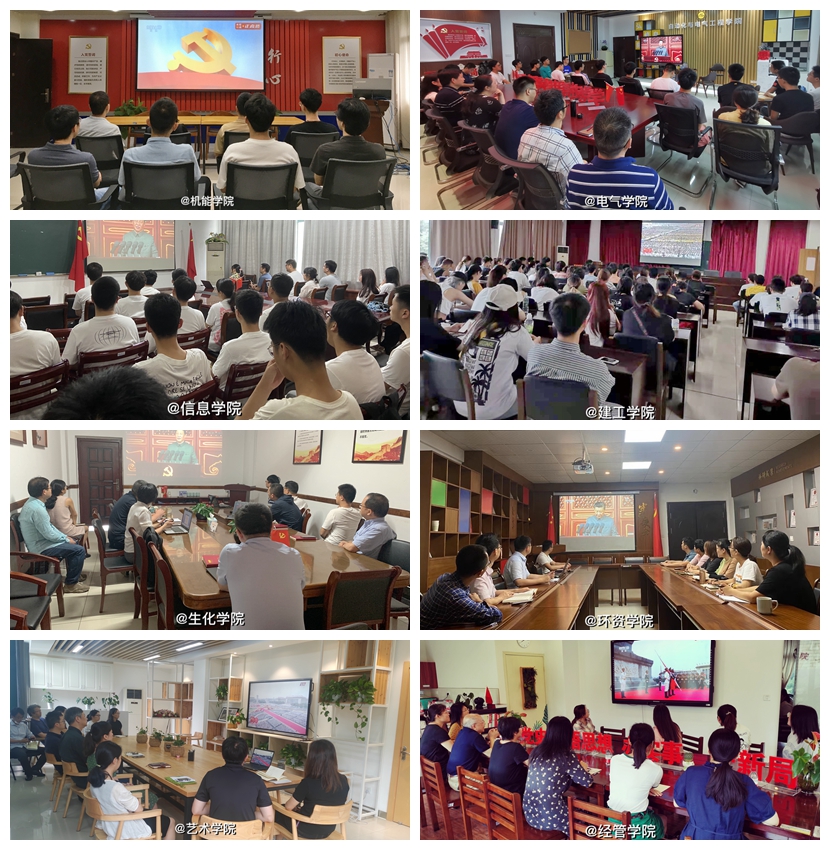 学校党政领导班子成员和部分职能部门负责人一起,在师生服务大厅观看直播。学校机关、各二级学院分别组织集中收听收看。全校师生员工、离退休党员高度关注大会动态,通过电视、网络、手机客户端等形式收听收看大会直播或回放。大家纷纷表示:听党话,跟党走。祝福伟大祖国繁荣昌盛,社会和谐,人民幸福!