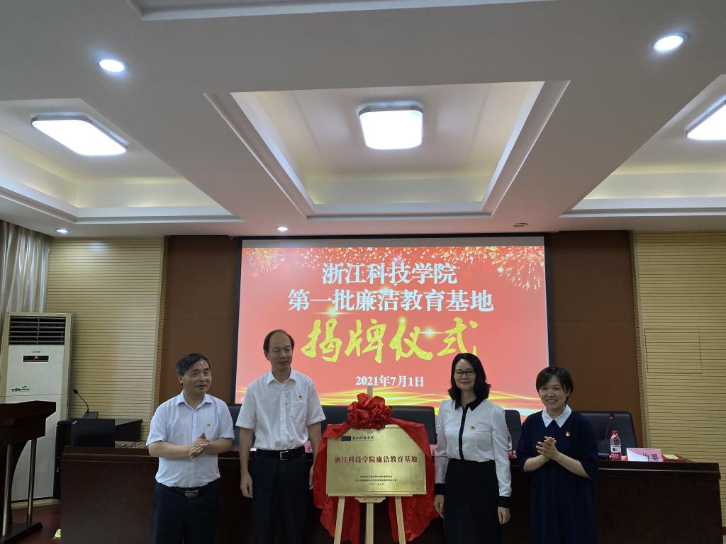 7月1日下午,我校第一批“廉洁教育基地”揭牌仪式举行,以正气充盈的方式庆祝中国共产党成立100周年。校党委副书记周加敏、校纪委书记、省监委驻浙江科技学院监察专员陆爱华共同为“廉洁教育基地”揭牌。