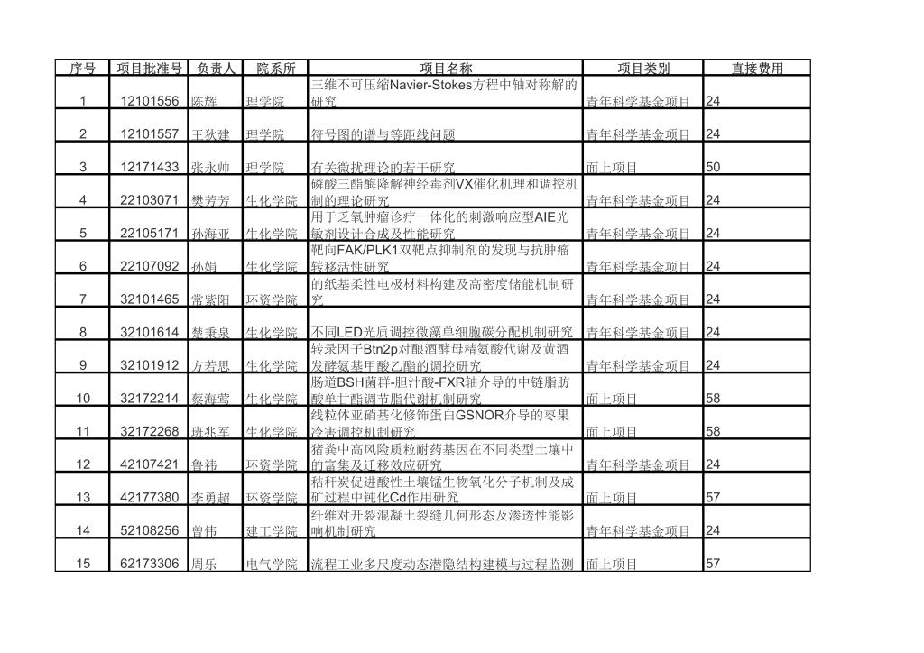 近日,国家自然科学基金委发布了《关于2021年国家自然科学基金集中接收申请项目评审结果的通告》(国科金发计〔2021〕51号),我校共有15个项目获国家自然科学基金立项资助(具体立项名单详见附表),其中面上项目立项资助5项,青年科学基金项目立项资助10项。总计直接经费金额达520万元,项目资助数和资助金额都较往年有较大提升。