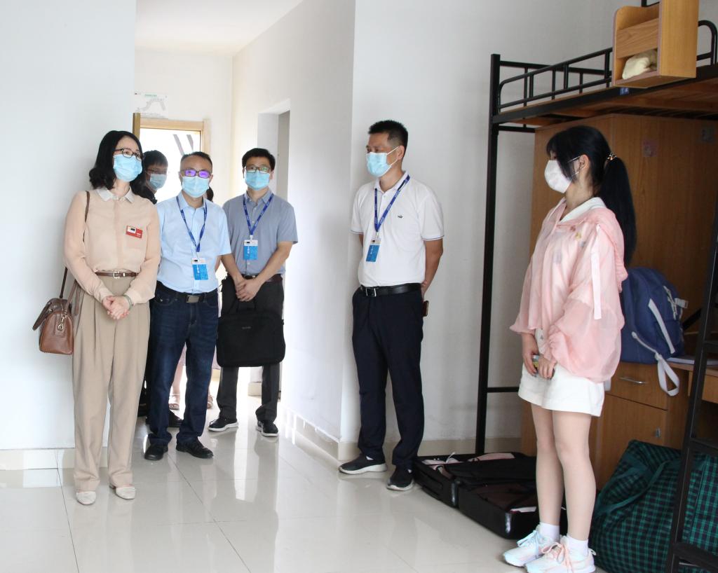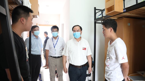 在新生寝室,校领导详细询问了新生的生活情况,勉励他们要勤奋学习,追逐梦想,并预祝他们学业顺利。