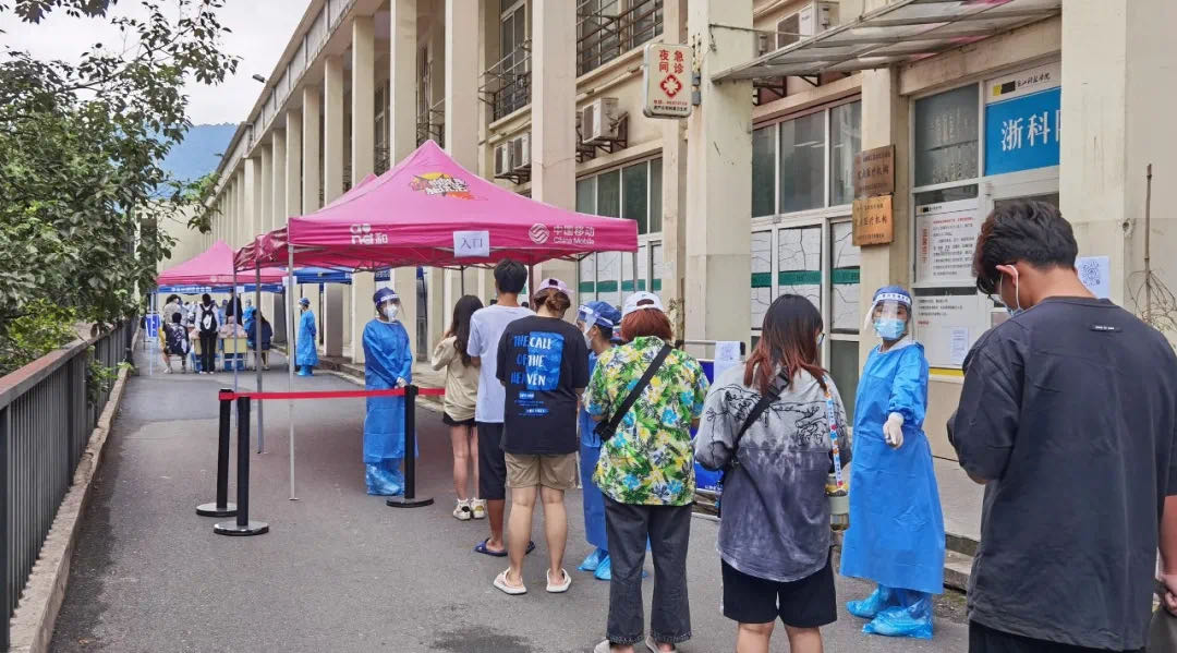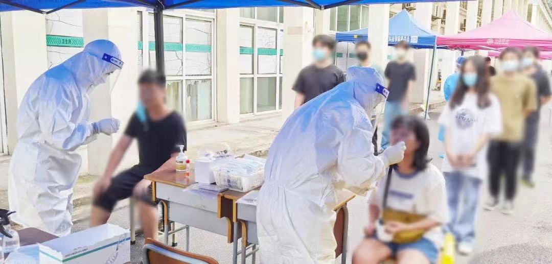15日上午,小和山校区安排核酸检测,相关学生有序排队,参加检测。(党委宣传部 宋珂)