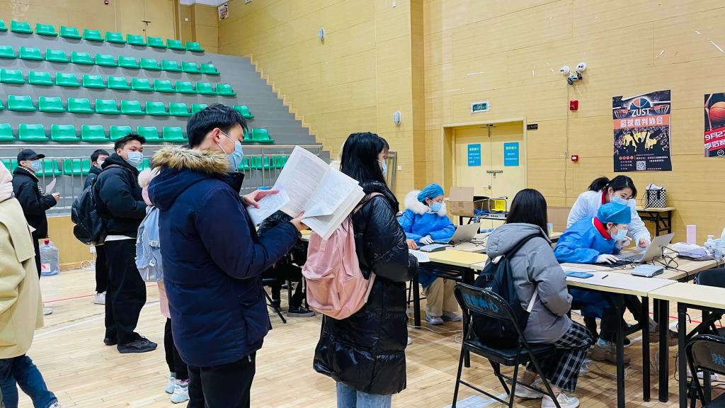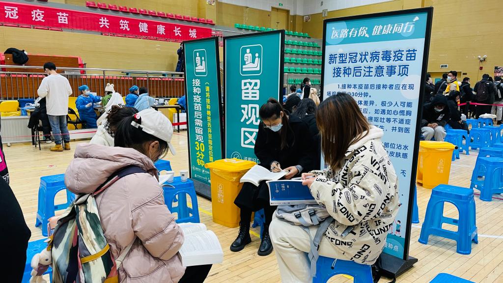 正值期末,前来接种“加强针”的同学们,在有序等待过程中和接种完成留观时,拿出书本学习。