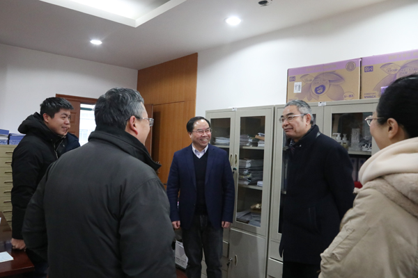 2月19日是新学期行政人员上班第一天,党委书记龚建立、校长赵东福走访机关各部门看望教职工。