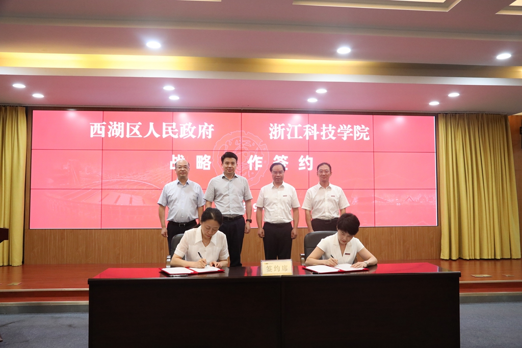 制定《浙江科技学院服务浙江制造业高质量发展行动计划》《浙江科技学院服务杭州城西科创大走廊打造创新策源地行动计划(2021-2025)》等文件,主动融入省委重大战略积极作为;充分发挥中德智能冷链物流技术研究院、中德科技促进中心地方分中心、海宁(中德)智能制造研究院等国际合作载体作用,服务“一带一路”国家战略,助力我省产业转型升级……学校立足应用型办学定位,聚焦企业、地方需求和“急难愁盼”,着力为企业(地方)解难题。学校与西湖区签订战略合作协议,共同推动西湖区高校经济高质量发展,实现学校高水平建设目标。校领导及二级学院领导亲自带队组织科研服务团深入企业,送技术、送服务、送理论,开展调研咨询和科技服务近百次;助力乡村振兴,成立浙江新时代乡村研究院;编制《结对天台县南屏乡实施计划(2021-2023)》,统筹推进产业帮扶、智力帮扶、人才帮扶,结对帮扶的上杨村年度黄茶销售量创历年新高。推动“三为”专题实践活动从校内到校外,从书本到实践,学校把党史学习教育的阵地延伸到服务社会一线。