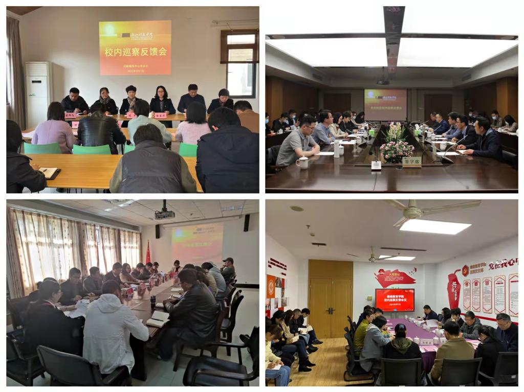 按照学校党委巡察工作统一部署,2022年3月中上旬,学校党委四个巡察组先后向安吉校区党总支、体育部直属党支部、继续教育学院直属党支部、后勤服务中心党总支反馈巡察工作意见并对做好后续巡察整改提出要求。