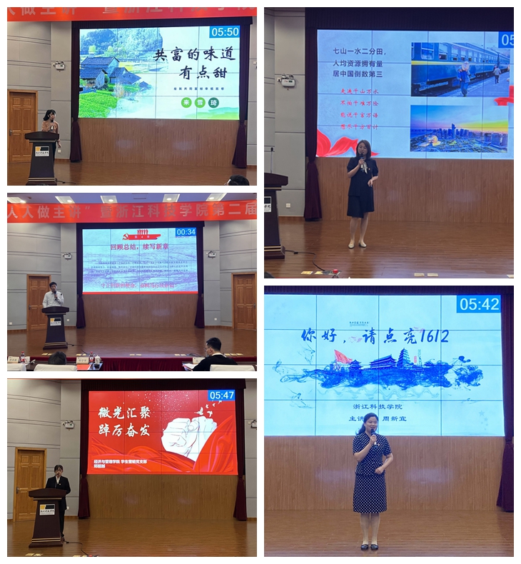 经过前期组织推荐、专家评审等环节,15位教工党员和10位学生代表进入决赛。参赛选手围绕“喜迎二十大 奋进新时代”主题,紧扣“幸福”“拼搏”“创新”“奋进”关键词,结合岗位、专业特点,创新讲演形式,融入自身经历,多角度展现十年来,浙江取得的辉煌成就和发生的可喜变化、个人的奋斗历程和美好生活。