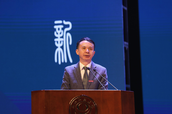 2002届校友、浙大网新建设投资集团有限公司副总裁吴成钢发言,祝福大家都能用母校赋予的知识和智慧,成长为实现民族复兴的栋梁之才。