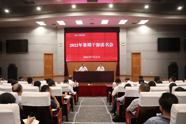 7月11-13日,学校举行暑期干部读书会。校党委书记赵东福作题为“推进应用型办学迭代升级,为浙江‘两个先行’贡献浙科力量”的报告,校长陈建孟就“策略与路径:关于深入推进‘一攻坚两培育’战略的思考”作报告。校党政领导班子成员出席读书会。