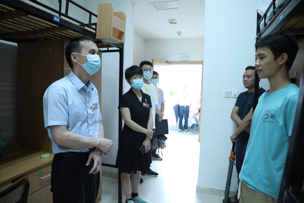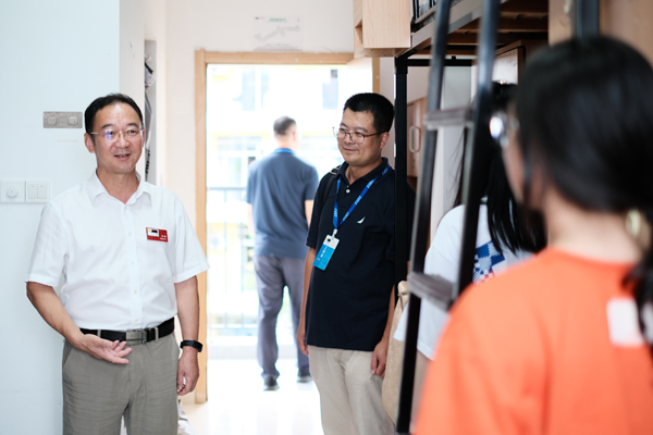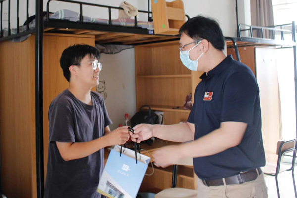 “老家哪里的?”“寝室坏境还可以吗?”校领导走进新生寝室,与新生亲切交流,仔细询问新生入校体验,了解新生兴趣爱好等,并叮嘱同学们珍惜学校的学习时光,不断提升自我,努力成长成才。