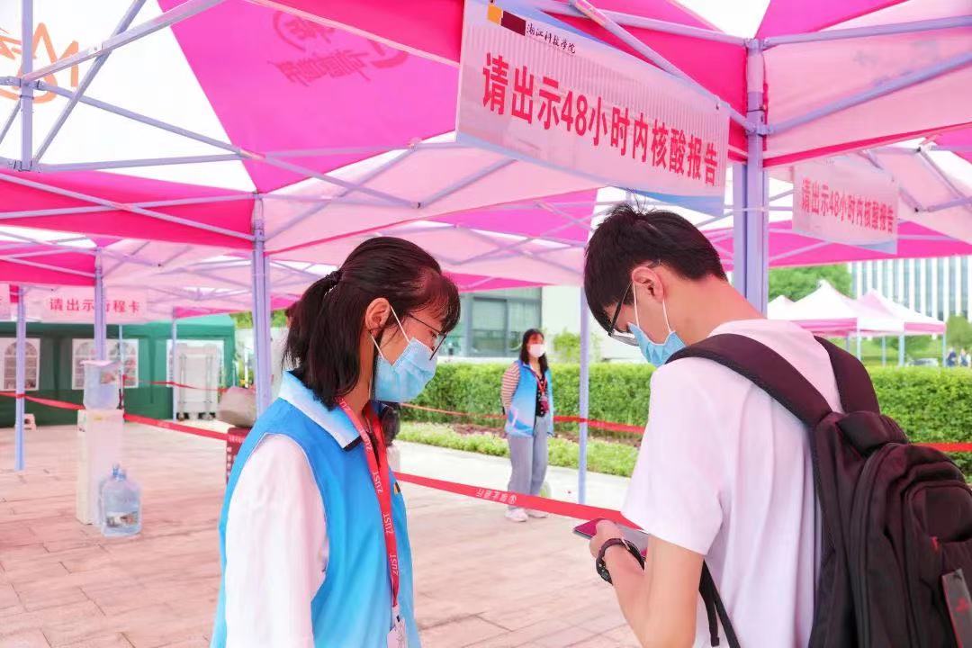 按照常态化疫情防控要求,新生分批错时报到,新生家长不能进入校园。在迎新志愿者和安保人员的引导帮助下,新生们在完成亮码、测温、消毒等流程后,有序来到各报到点领取相关物品。