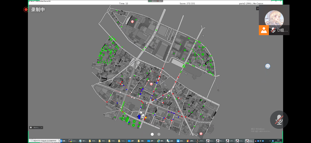 RoboCup救援仿真是一个通过模拟现实生活中的城市灾难场景,用机器人进行救援的仿真系统,其目的主要是使救援智能体进行有效的分工协作,最大限度减小灾难带来的损失,进而在灾难救援这个重大的社会问题上促进研究和发展。比赛分为预赛和决赛两个阶段,每场比赛使用6-8个地图进行跑分,跑分高低转换为排名,获得积分,最后累计积分总和公布比赛最终成绩和晋级队伍。