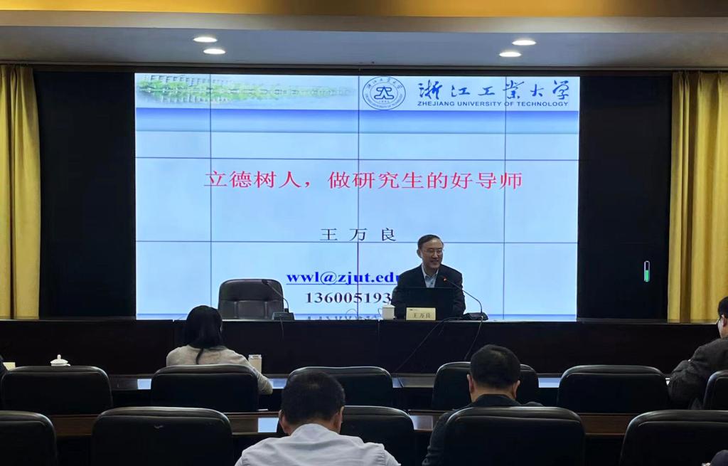 11月10日,学校举行2022年硕士研究生导师培训会,副校长万健出席会议。浙江工业大学王万良教授应邀为与会人员作主题报告。