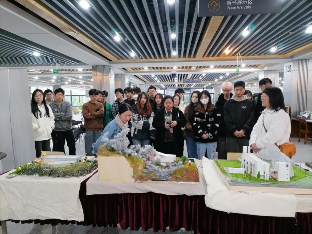 环境艺术专业课程中,景观制作是必修知识点。单思佳小组结合微景观制作相关知识,尝试微景观中式插花艺术作品。布展当天一早,小组成员到花鸟市场买回包括月季在内的10余种花。搭配先期制作完成的铁艺花架和木板切割喷漆制作的雀替组合框架等,在两个小时内,大家现场完成了《窗》这一作品。“虽然不是去田间地头劳动,但我们把日常观察到的景色利用手工拼装制作,结合适当的美学构图原则,以微缩、精致的方式呈现出来。”