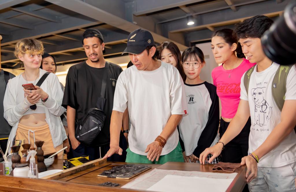 传统雕版印刷作为一种优秀的传统文化,是世界现代印刷术的最古老的技术源头,对人类文明发展有着突出贡献。留学生们听了雕刻大师王建兵对传统雕版印刷的历史和工具介绍,看他演示雕版印刷过程。棕刷上墨、匀墨,铺纸、刷印,起纸,留学生们在老师的细心指导下,开始属于自己的雕版印刷体验,实际体验固板、洒水、刷墨、覆纸、刷印、晾干等工艺流程,学生们纷纷表示:能够参加此次活动非常难得,既体验了有着印刷界“活化石”之称的雕版印刷术带来的无穷乐趣,又深刻领悟了“匠心”精神。