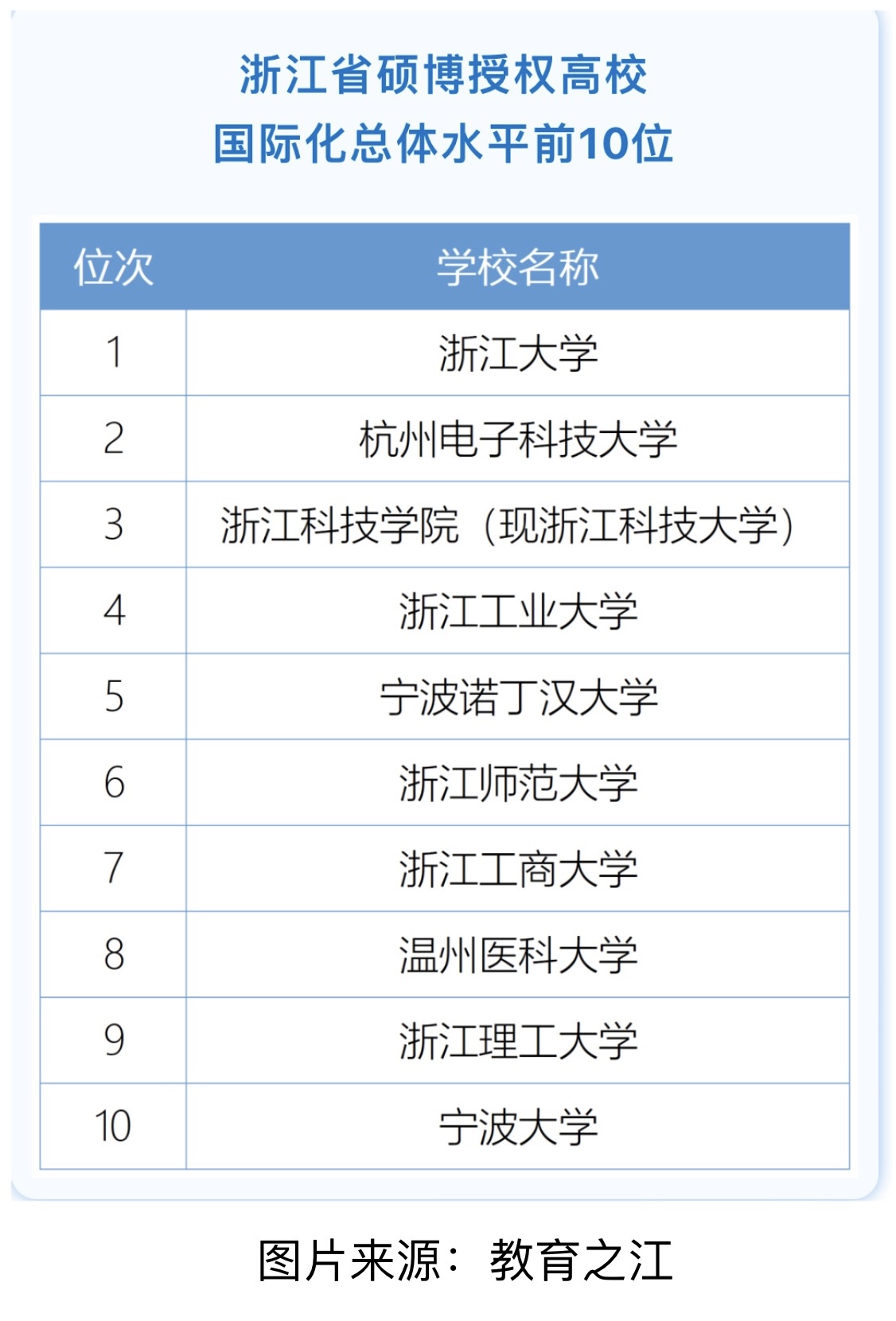 近日,省教育厅公布新一期的《浙江省高等教育国际化发展年度报告》,我校国际化总体水平位列浙江省硕博授权高校第3名,创历史最好成绩。