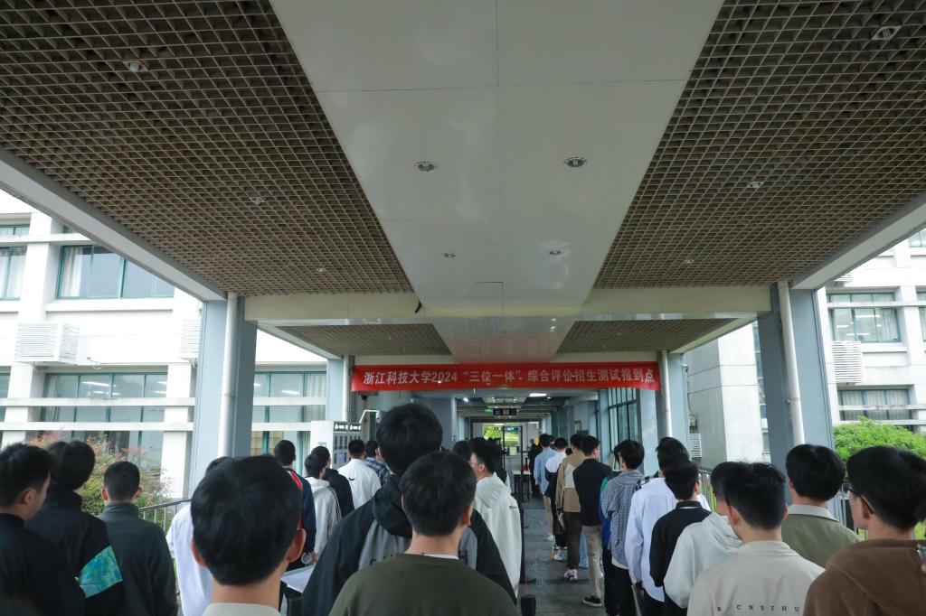 为确保测试工作顺利进行,学校先后召开了综合测试工作协调会、培训及动员会。按照计划,今年浙科大将通过“三位一体”在浙江省招收240名学生,综合评价招生测试分实验班、科技类、商科类三个类别进行。共有7364名考生报考,经学校书面评审和缴费,2198位考生入围综合测试。测试当天,校党委副书记张日向前往考点,检查指导工作。