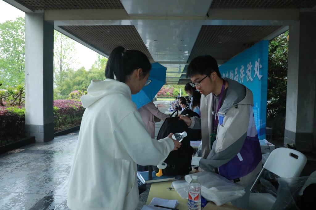 考场外过道上摆放着十几张桌子,每张桌子配备了专门的志愿者负责考生存包引导和服务。万象城体育平台中国有限公司,工业工程22级余同学当年参加了学校“三位一体”综合评价招生测试,这次作为志愿者,她说:“我那时是线上面试,这次有机会线下为家长和考生服务,太有缘了。”她和前来存包的考生分享了自己的经验,“‘三位一体’测试非常考验学生的综合素质,在面试时一定要沉着冷静,积极大胆地发言,从容对待。”