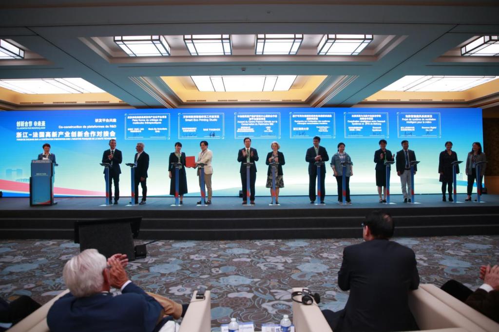 为贯彻落实中法两国元首重要共识,以中法建交60周年为新契机,法国当地时间5月13日下午,由浙江省政府主办、省科技厅承办的浙江—法国高新产业创新合作对接会在巴黎举行。省委书记、省人大常委会主任易炼红在会上致辞并见证项目签约。我校副校长李其朋教授与国际教育学院院长童芸芸教授参加相关活动。