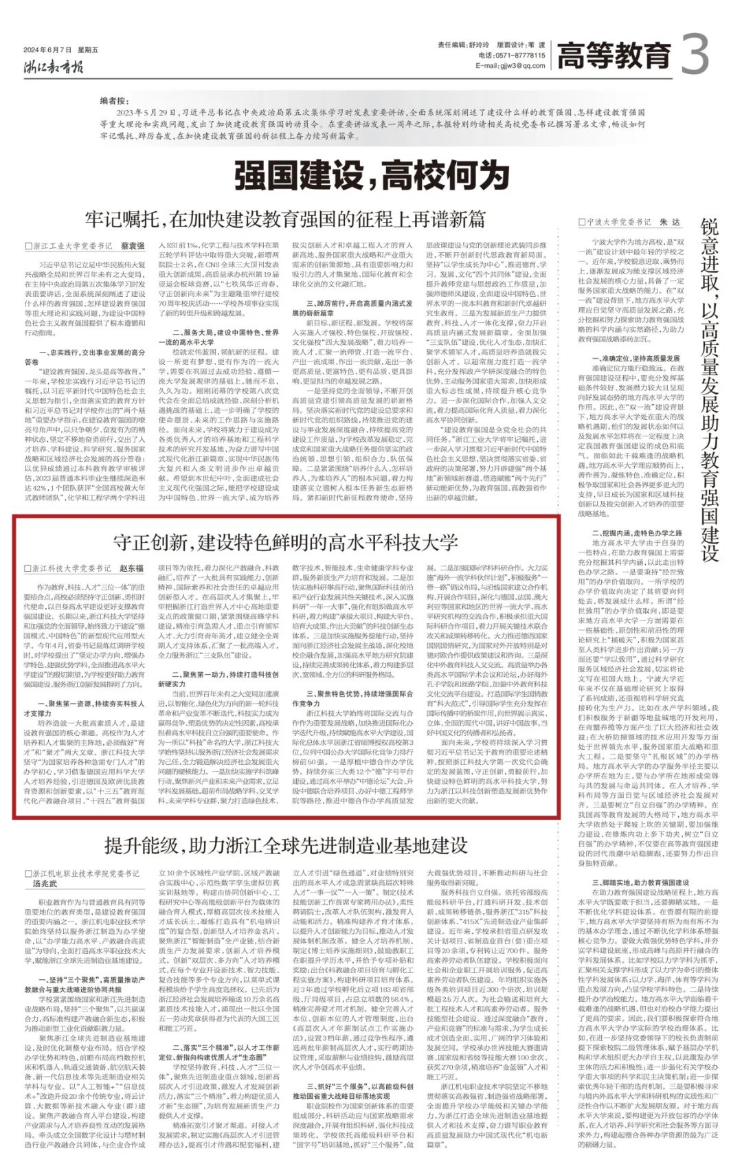 2023年5月29日,习近平总书记在中央政治局第五次集体学习时发表重要讲话,全面系统深刻阐述了建设什么样的教育强国、怎样建设教育强国等重大理论和实践问题,发出了加快建设教育强国的动员令。在重要讲话发表一周年之际,校党委书记赵东福受邀在《浙江教育报》发表署名文章《守正创新,建设特色鲜明的高水平科技大学 》。全文转载如下: