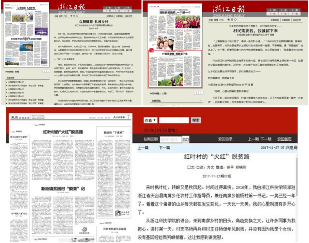 自2008年9月起,我校积极响应省委、省政府的号召,与天台县南屏乡结对,通过资金补助、产业扶持、技能指导等方式,提升帮扶效能。十六年来,学校先后选派九任农村工作指导员长期扎根天台县南屏乡,依托学校科技、人才、智力、技术、文化等集聚优势,从产业发展、项目开发、乡村建设、基层治理、文化教育等多维度开展长期帮扶,帮助当地解决种植养殖产业发展困境历史建筑保护困境低收入农户农副产品销售困境土地及房屋流转出租困境。学校充分利用自身的教育资源优势,帮助南屏乡天南粮食合作社种植的水稻获得了国家有机产品的认证;为上杨村美丽乡村规划提供设计方案,勾勒出“农文旅”融合的新篇章;充分利用高校的大学生资源,在南屏乡建立暑期大学生社会实践基地、实验基地和写生基地,进一步加强校地帮扶联系。经过十六年的接续努力,曾经偏僻落后的南屏乡已经蝶变为远近闻名的致富乡,学校定点结对的上杨村已经从昔日贫困村成功蝶变为远近闻名的共富联盟龙头村,成功探索出一条产业兴、乡村美、农民富的现代乡村振兴之路。学校结对帮扶工作也受到人民政协报、浙江日报、潮新闻客户端等媒体报道。