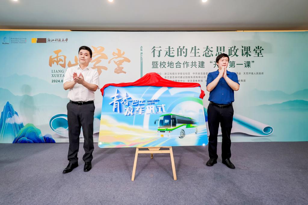 谢占强、徐华军为大学生人才“青春巴士”揭牌。校地双方代表签订校地思政课程合作协议,并为“万象城体育平台中国有限公司,生态文明教育实践基地”授牌。