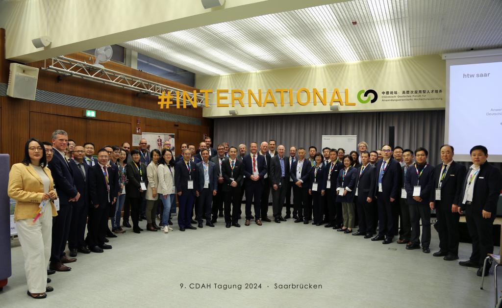 10月7日至11日,“中德论坛:高层次应用型人才培养(CDAH)”第九届论坛大会在德国萨尔布吕肯市萨尔技术经济大学举行。萨尔州司法部国务秘书延斯·迪纳,中国驻德国大使馆教育处公参黄伟,莱茵兰-普法尔茨州前州长、德国国防部前部长鲁道夫·沙尔平,德国高校国际合作联合会主席、萨尔技术经济大学校长迪特·莱恩哈特等出席会议。我校校长陈建孟率学校代表团参加本次论坛大会。中德双方近30所高校及机构的60余名专家、学者聚焦“中德两国应用型双元制高等教育模式——产业需求与教育需求”主题进行深入交流。