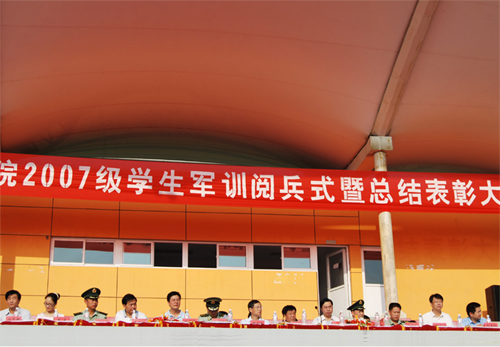7月18日上午,2007级学生军训阅兵式暨总结表彰大会隆重举行。校领导徐志平、胡浙平、赵东福和承担本次军训指导任务的武警杭州指挥学院领导出席大会。学校各相关职能部门、各学院负责人也在主席台就座。