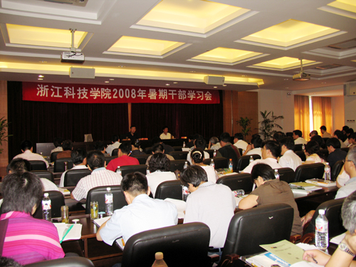 7月7日,为期4天的2008年暑期干部学习会召开。校党政领导班子成员出席开班式。校党委书记徐志平、校长杜卫分别做主题报告。