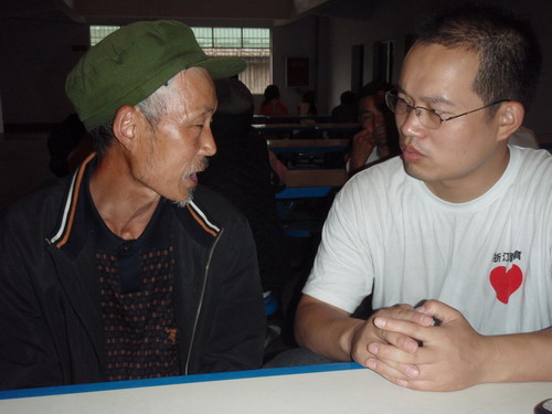 一位姓王的大爷成了我干预的对象。他今年61岁,前两年女儿因病去逝了,在这次地震中家人有的受伤,有的失踪,家庭变故极大, 这些接连的打击对王大爷的影响是巨大的。我对她开始进行了心理危机干预,干预的重点在于宣泄堆积起来的负面情绪。通过几次干预,王大爷的情绪有了好转。