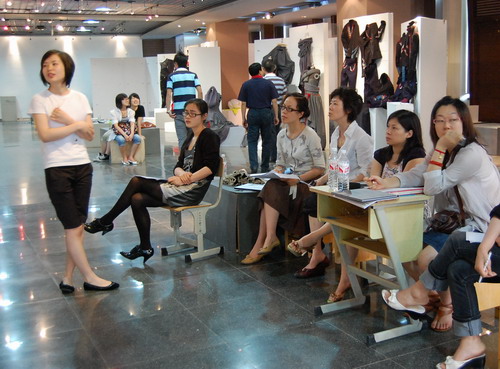 6月11日,服装设计专业将答辩现场搬到了学生们的成衣作品前。